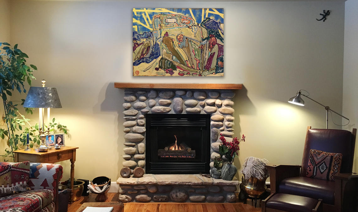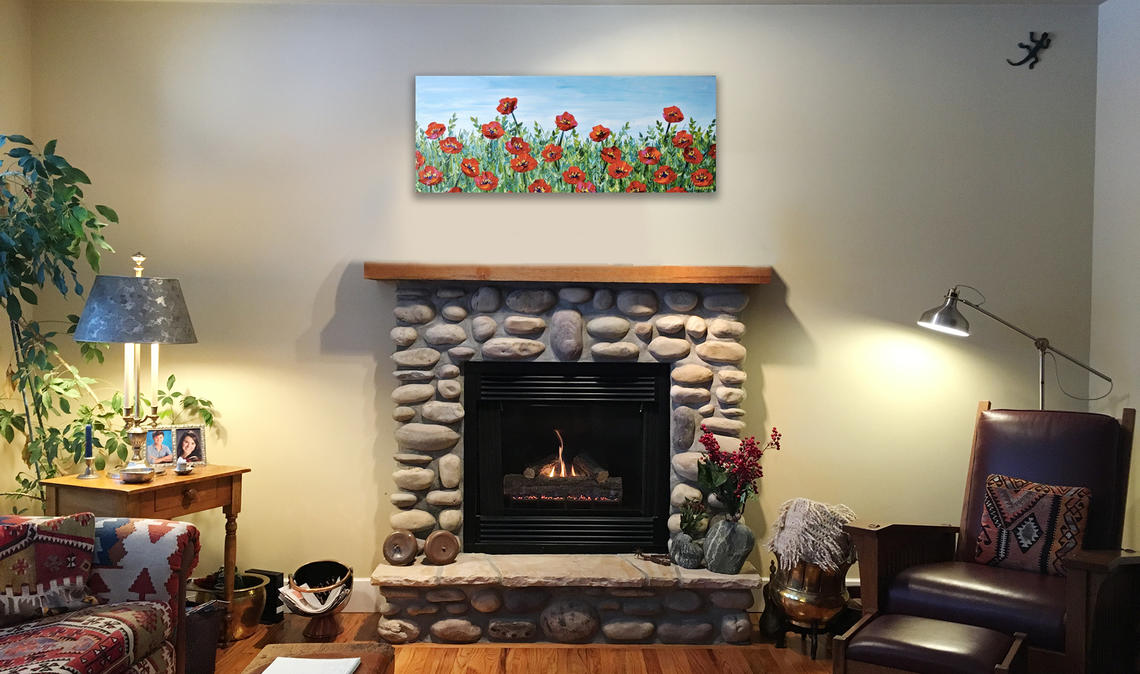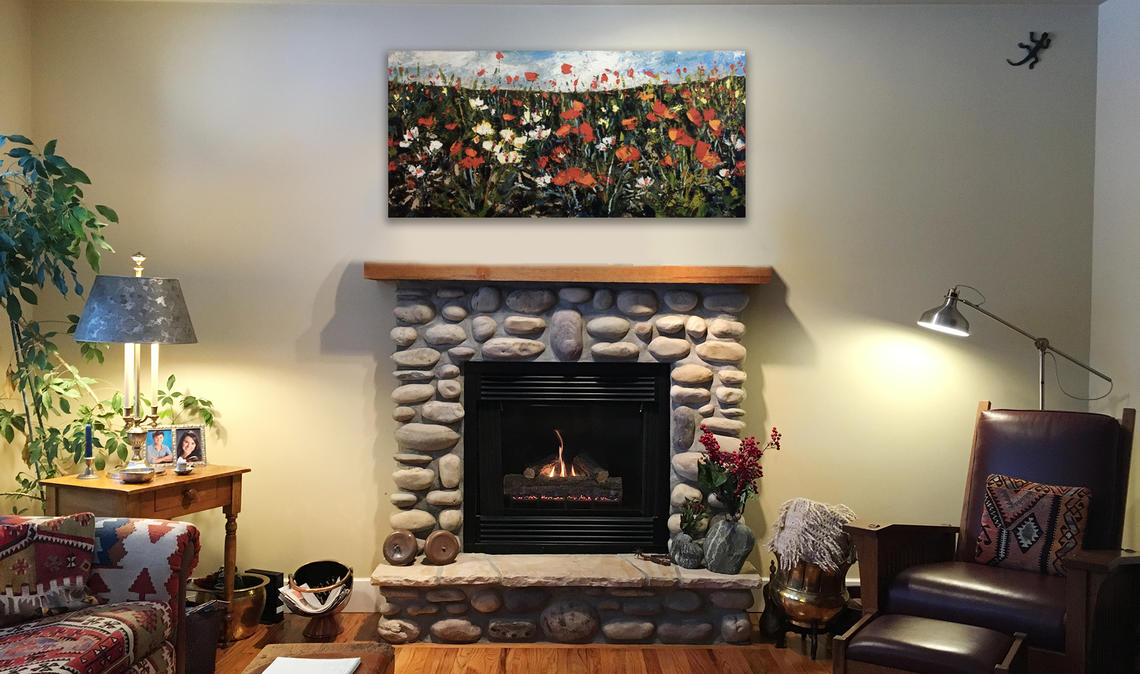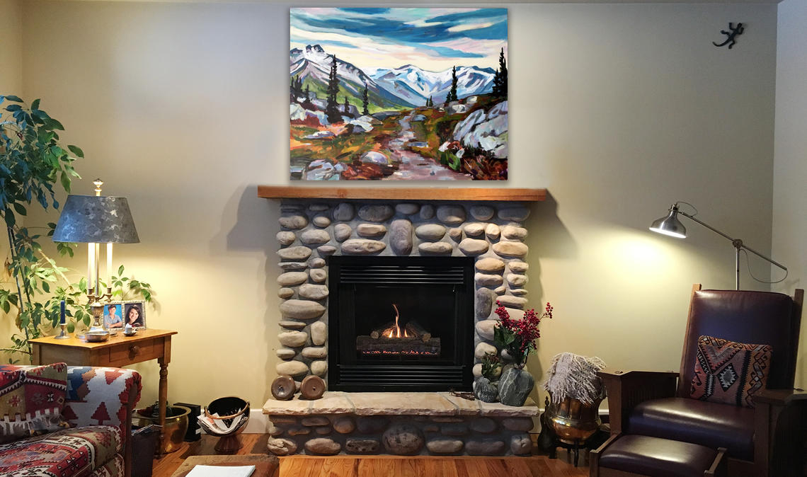 For me, the whole process took place from the comfort of my couch over a cup of tea. And then, 24 hours later, I was staring at nifty images of my art shortlist cleverly placed on my walls — from soothing prairie landscapes and big, bold mountainscapes, to abstract flowers and canvases of whimsy — which made all the difference. After culling my choices even further, Midha brought several paintings to my home; part of her service that lets her customers “test-drive” the art for 48 hours before making a decision.