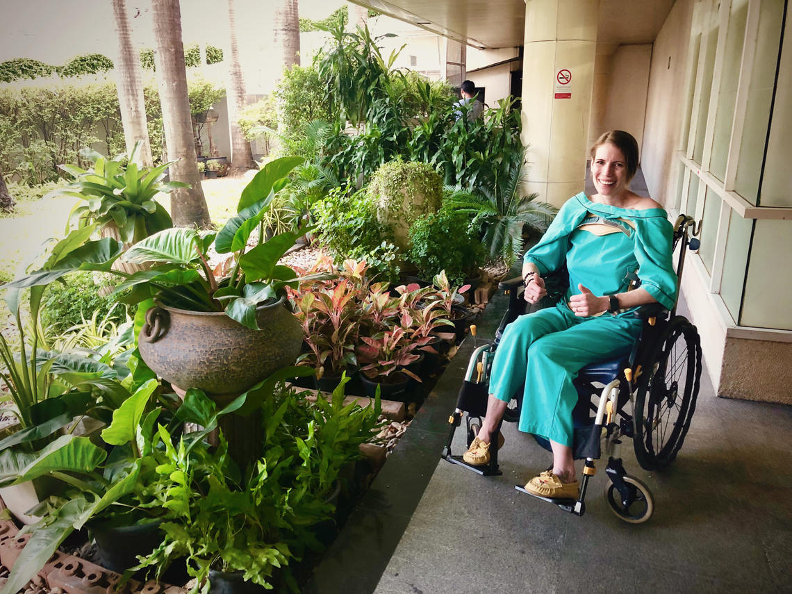 After two weeks in a Bangkok hospital, five days of which were spent in the ICU, Russell struggled with the after-effects of her injuries back home in Calgary, relying on her 16-year-old daughter, in a complete role-reversal, to shower, dress and feed her.